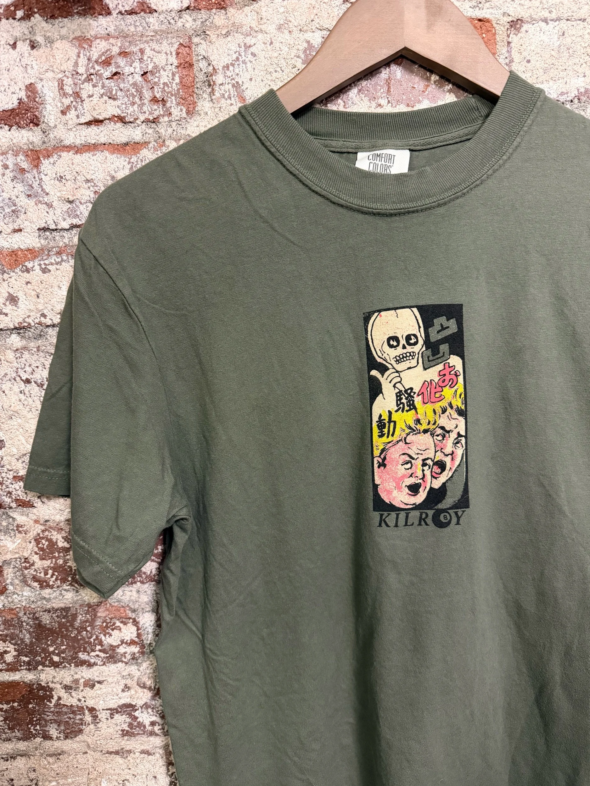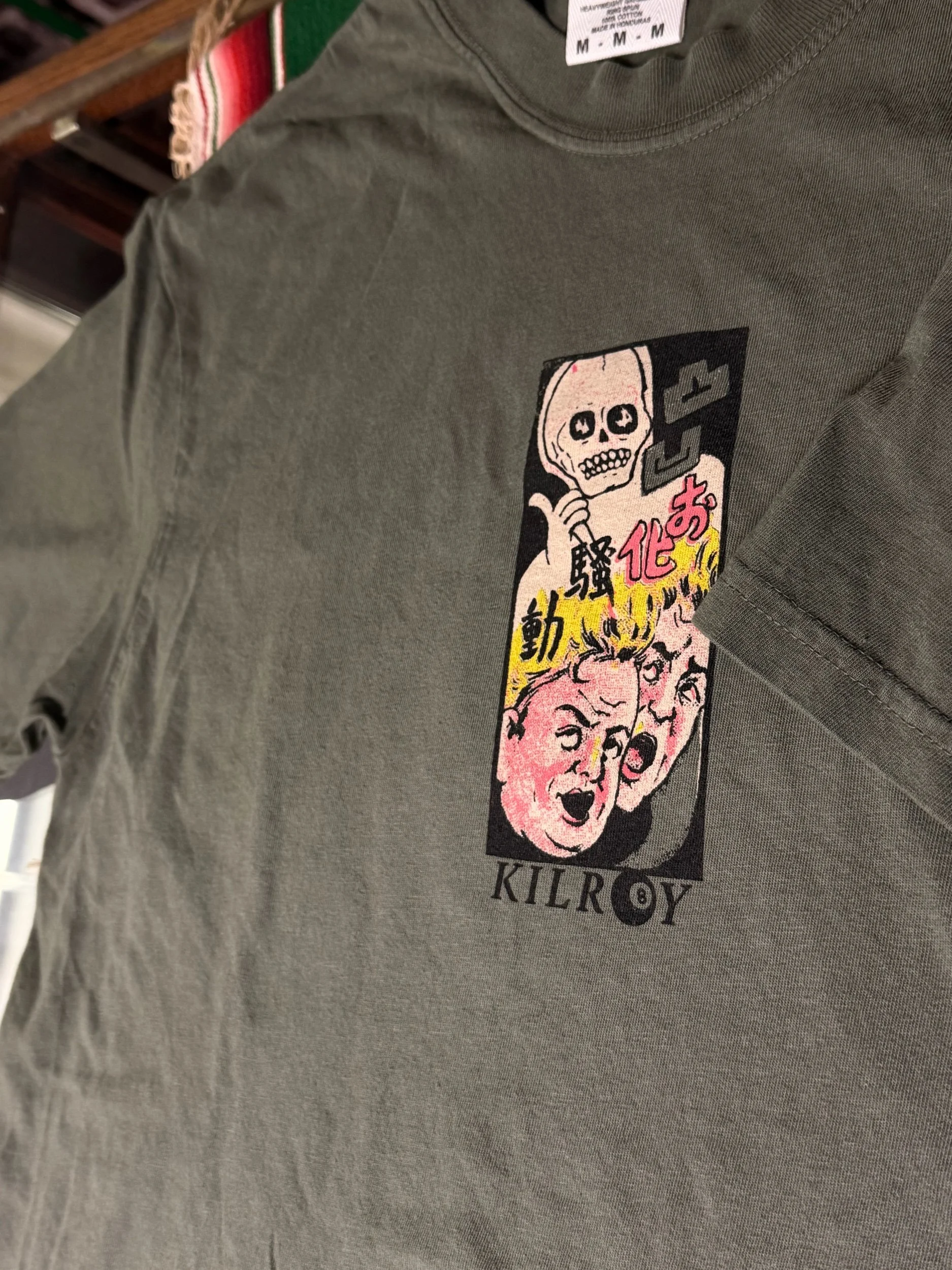 Printed on comfort colors using an algae pigment ink. This high quality ink will have no hand feel after a few washes and a great lightly vintage look over time. Best to wast inside out on cold for first wash.